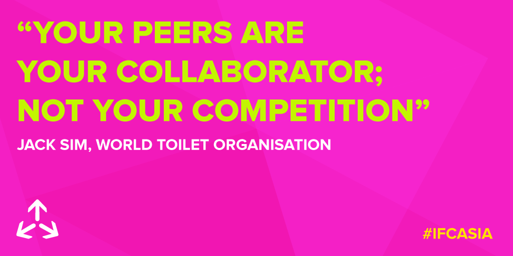 I’ve just come out of the closing plenary where I was fortunate enough to hear Jack Sim, aka Mr Toilet, talk sh*t. Yep. He talked about sh*t for a good 45 minutes, and I can honestly say it was for me one of the best talks I have ever attended. His refreshing approach to what he refers to as quite frankly a “sh*t subject” has kept him feeling so fresh about sh*t even though he’s been talking about it for 17 years.